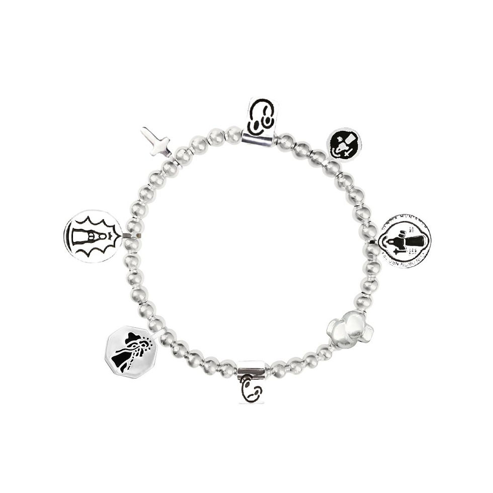 Personaliza tu Pulsera para Orar con los dijes de tu elección. Pulsera de esferas en Plata Esterlina .925 con cordón elástico multifibra.